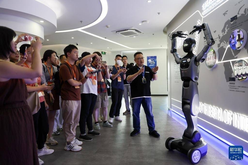 2025年9月12日,媒体采访团在上海擎朗智能科技有限公司观看人形机器人表演。新华社记者 王翔 摄