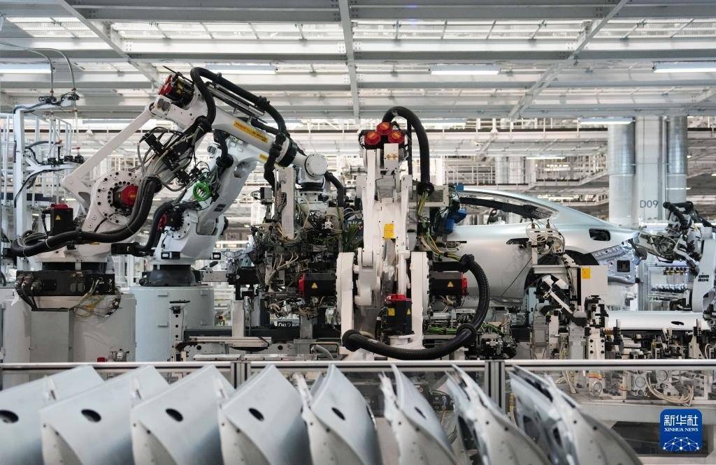 2025年6月16日,机器人在位于北京经济技术开发区的小米汽车工厂车间流水线上作业。新华社记者 郑焕松 摄